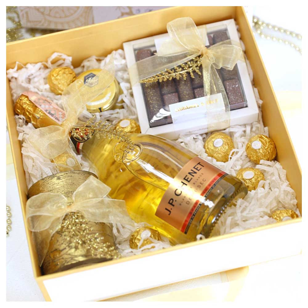 Подарунок, який викликає захоплення ще навіть до того, як його відкрили. Характерність і вишуканість у кожному інгредієнті. Шампанське з благородною історією, ексклюзивний десерт — цукерки ручної роботи з солоною карамеллю, ніжний крем-мед і свічка по-королівськи. Подарунок гідний королів.